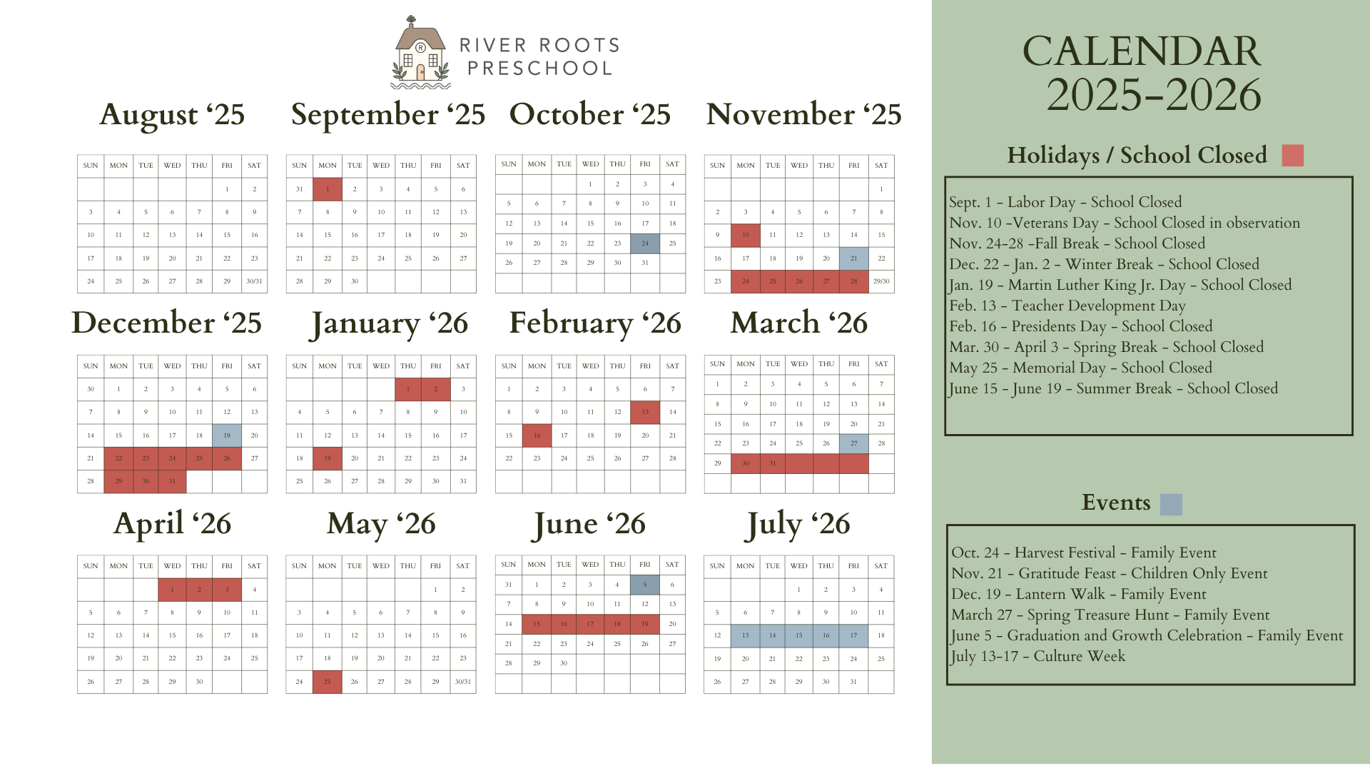 Our school aims to align holidays with the San Juan Unified School District. This calendar is subject to changes at this time.